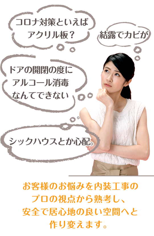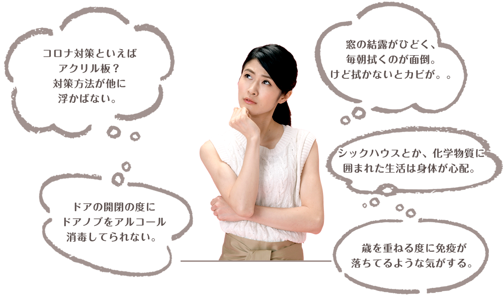 人の集まる空間を創って早40年。住宅・オフィス・商業施設などたくさんの空間創りをする中で、「人が長く過ごす空間の空気は綺麗な方が良い」という当たり前のことがあまり意識されて来なかったことに気がつきました。コスト重視の素材選びや、石油製品のビニルクロスや建材によりシックハウスなどにより、知らず知らずのうちに体に害を与える空間が創り出されれるのが普通となってしまいましたが、私達は様々な人に優しいモノに行き着きました。